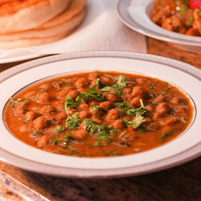 Slow cooked and tender chickpeas, spiced to perfection with onion, tomatoes, coriander seed, garlic, chiles, ginger.