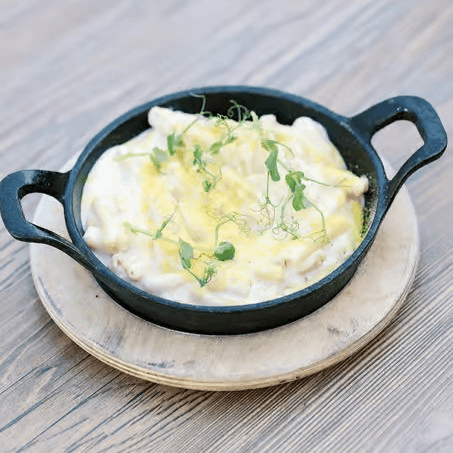Organic pasta baked in rich smoked cheddar Mornay sauce