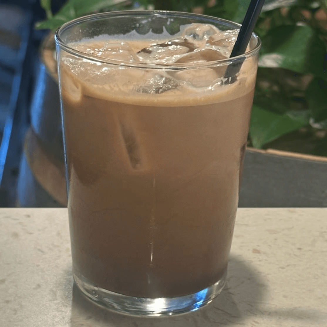 Fresh organic espresso blended with dark chocolate and milk, served over ice