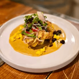 Local roasted cauliflower over our house-made French curry with warm Indian spices. Served with a chili onion salad and sweet cranberries for a flavorful balance of spice and freshness
