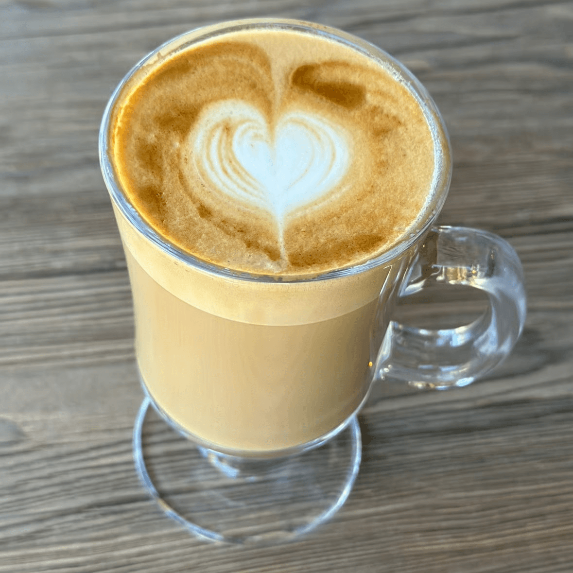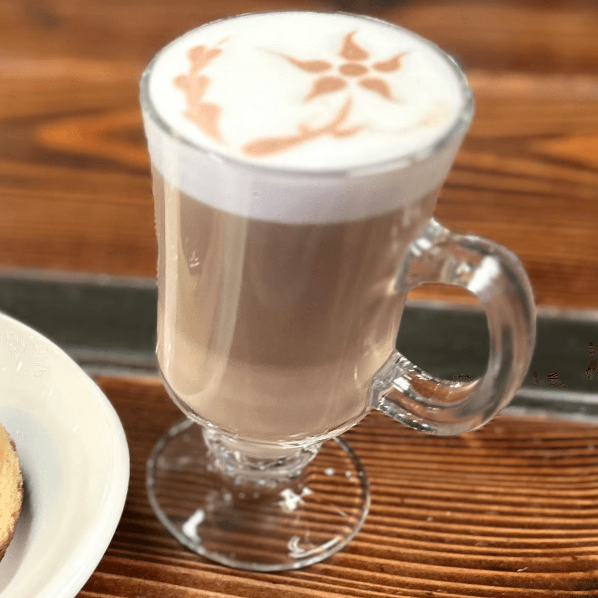 Fresh organic espresso with steamed milk and your choice of syrup: vanilla, hazelnut, caramel, salted toffee caramel, chocolate, brown sugar, lavender, or rose
