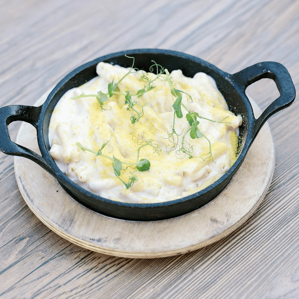 Organic pasta tossed in a creamy, house-made cashew sauce for a 100% vegan take on mac and cheese