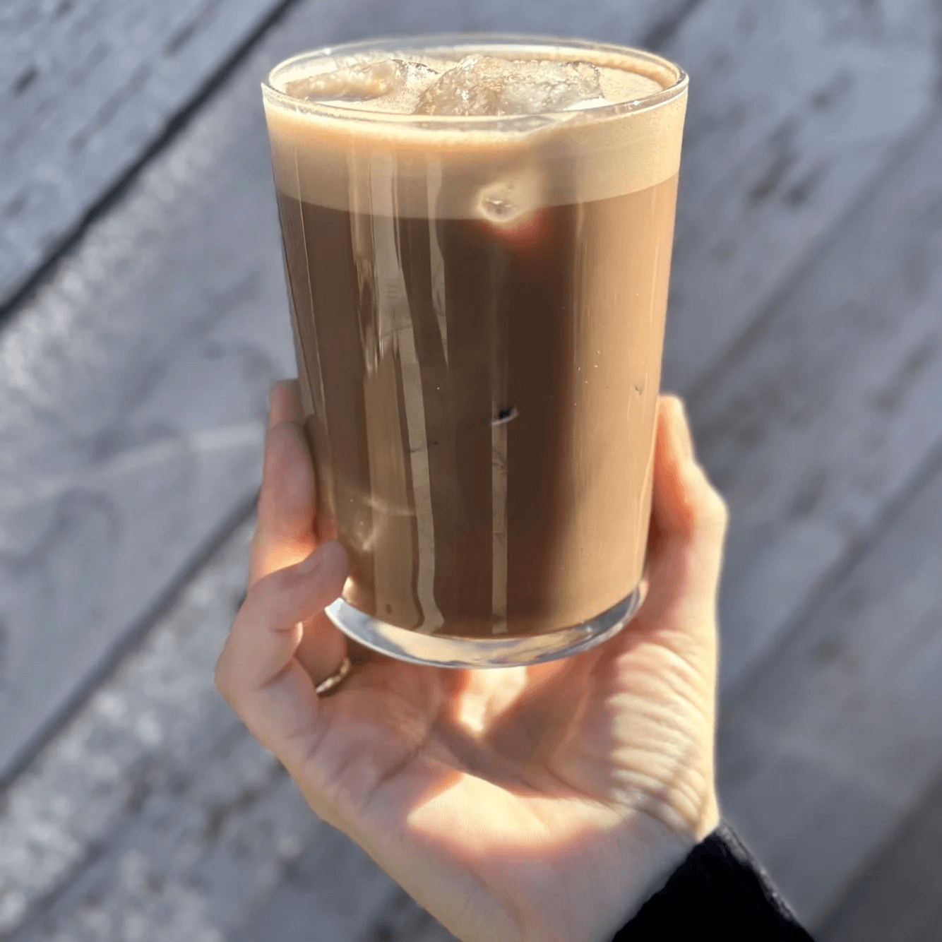 Double shot of organic espresso shaken over ice with a touch of house-made brown sugar syrup and cinnamon