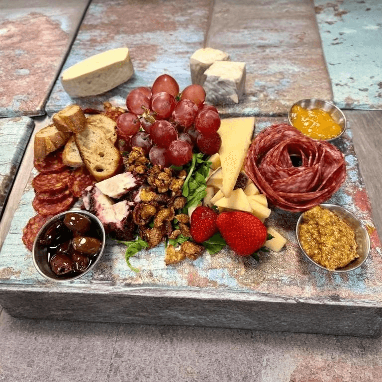 A chef-selected assortment of organic cheeses, cured meats, fresh seasonal fruit, and assorted nuts
